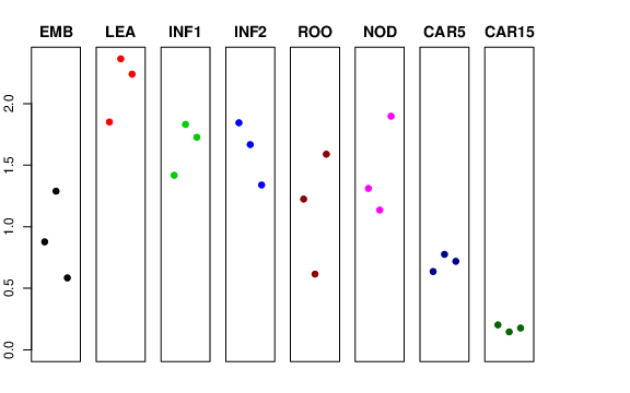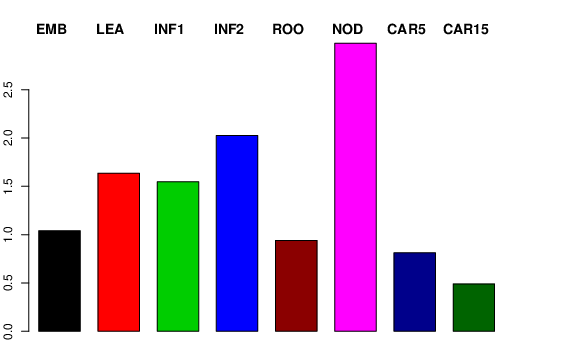 | ROO | Roots from the seedlings (10 cm shoot stage) | 1.22477 | 0.615431 | 1.58939 | 0.940435 |