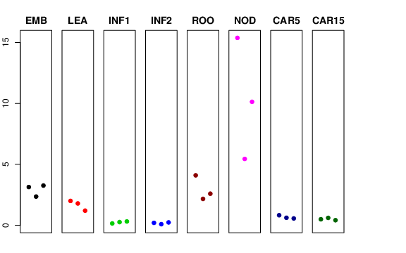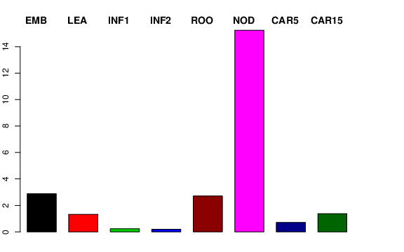 | ROO | Roots from the seedlings (10 cm shoot stage) | 4.09577 | 2.16312 | 2.58764 | 2.7126 |