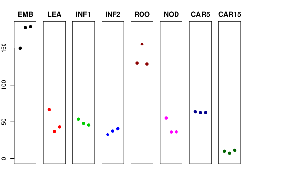 | ROO | Roots from the seedlings (10 cm shoot stage) | 129.678 | 155.54 | 128.408 | 173.253 |