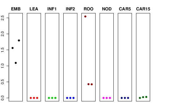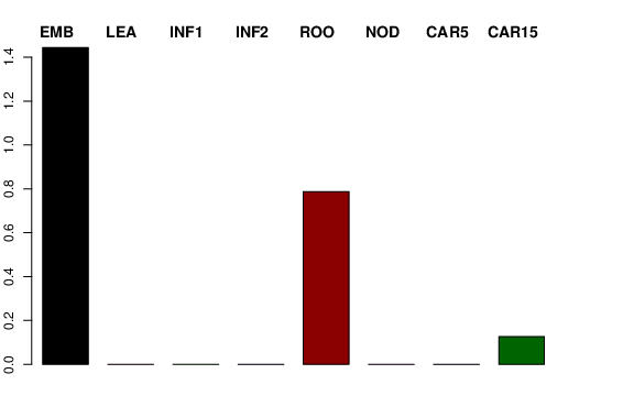 | ROO | Roots from the seedlings (10 cm shoot stage) | 2.54433 | 0.429237 | 0.425552 | 0.787467 |