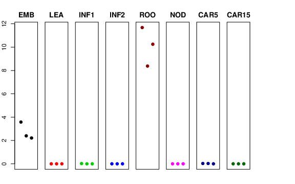 | ROO | Roots from the seedlings (10 cm shoot stage) | 11.6809 | 8.37775 | 10.2507 | 10.7634 |