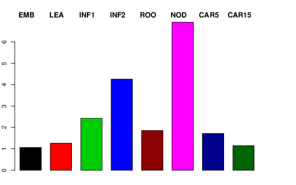 | ROO | Roots from the seedlings (10 cm shoot stage) | 1.99638 | 1.33236 | 1.8651 | 1.85278 |