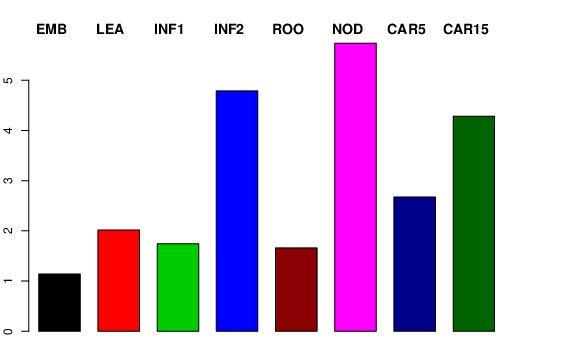 | ROO | Roots from the seedlings (10 cm shoot stage) | 1.25674 | 1.17475 | 2.81191 | 1.65899 |