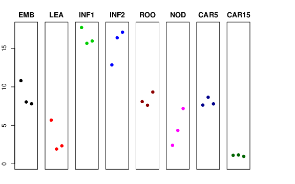 | ROO | Roots from the seedlings (10 cm shoot stage) | 8.07754 | 7.61778 | 9.32816 | 9.67558 |
