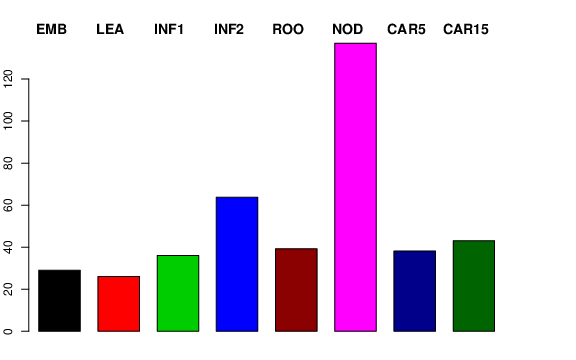 | NOD | Developing tillers at six leaf stage, 3rd internode | 31.341 | 41.9117 | 30.722 | 137.072 |