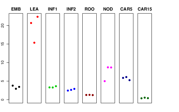 | ROO | Roots from the seedlings (10 cm shoot stage) | 1.27944 | 1.31381 | 1.24859 | 1.57874 |