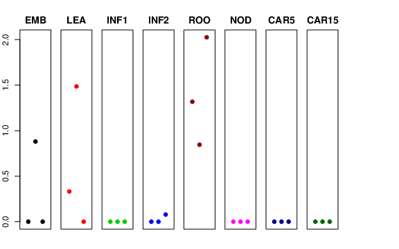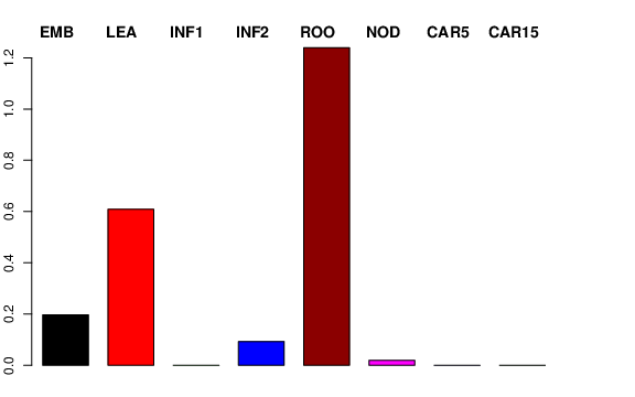 | INF2 | Developing inflorescences (1-1.5 cm) | 0 | 3.8534e-06 | 0.078239 | 0.0923513 |