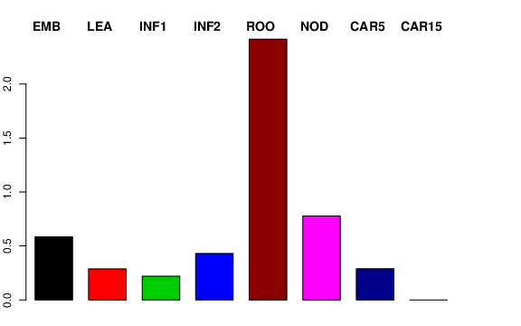 | ROO | Roots from the seedlings (10 cm shoot stage) | 4.37723 | 2.48741 | 1.56951 | 2.416 |