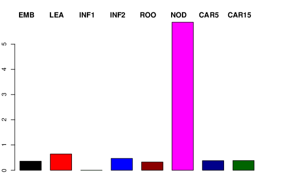 | NOD | Developing tillers at six leaf stage, 3rd internode | 3.84361 | 1.50432 | 2.1338 | 5.86997 |
