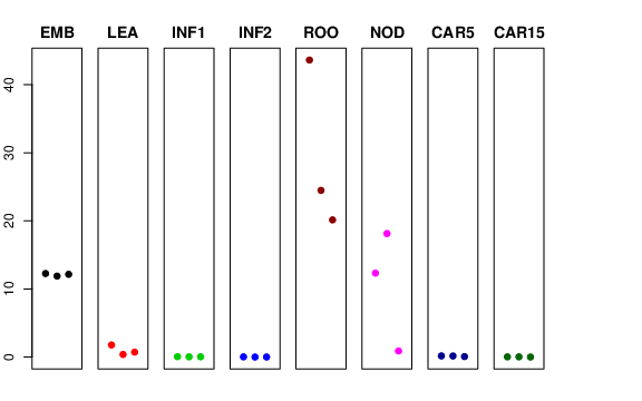 | ROO | Roots from the seedlings (10 cm shoot stage) | 43.6369 | 24.4837 | 20.1517 | 28.1043 |