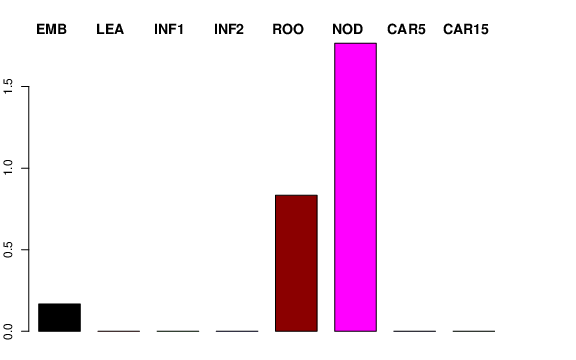 | ROO | Roots from the seedlings (10 cm shoot stage) | 0 | 1.72574 | 0 | 0.833305 |