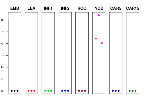 | ROO | Roots from the seedlings (10 cm shoot stage) | 0 | 0 | 0 | 0 |