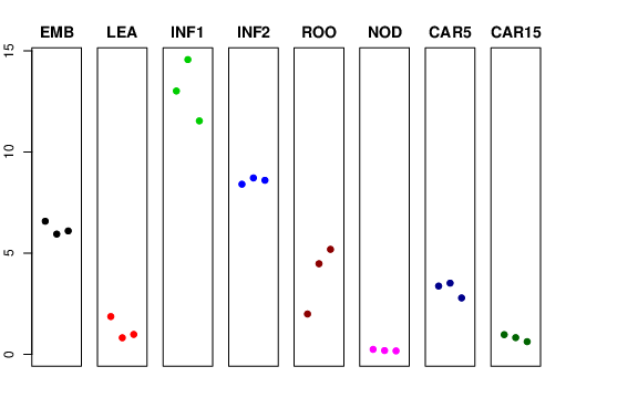 | ROO | Roots from the seedlings (10 cm shoot stage) | 1.99368 | 4.47729 | 5.18687 | 5.03304 |