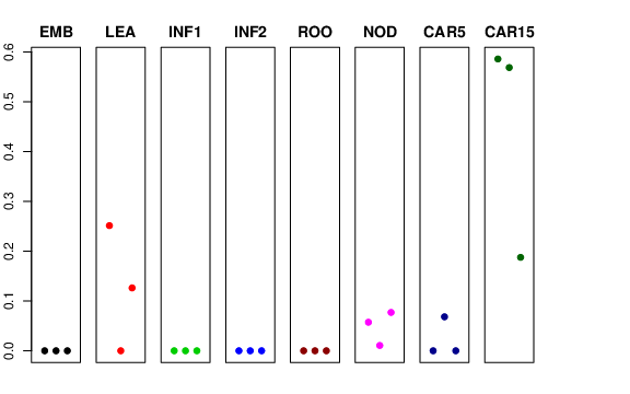 | ROO | Roots from the seedlings (10 cm shoot stage) | 0 | 0 | 0 | 0 |
