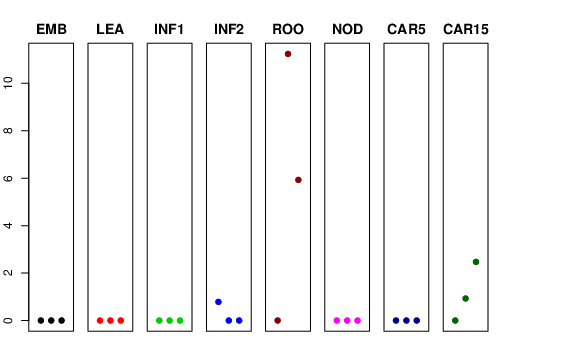 | ROO | Roots from the seedlings (10 cm shoot stage) | 0 | 11.2406 | 5.9298 | 9.40209 |