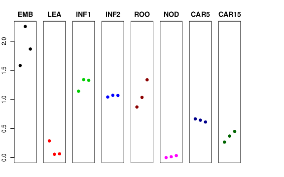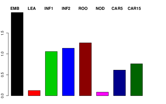 | ROO | Roots from the seedlings (10 cm shoot stage) | 0.870671 | 1.03643 | 1.33835 | 1.26527 |