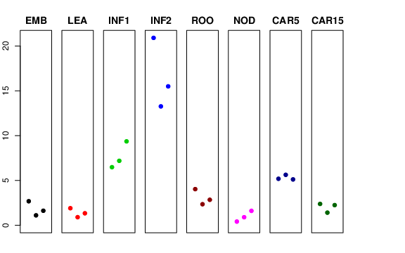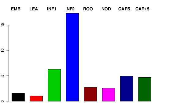 | ROO | Roots from the seedlings (10 cm shoot stage) | 4.03168 | 2.34629 | 2.84104 | 2.71079 |