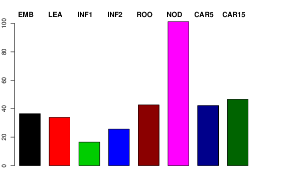 | NOD | Developing tillers at six leaf stage, 3rd internode | 23.3226 | 32.0571 | 38.352 | 101.261 |