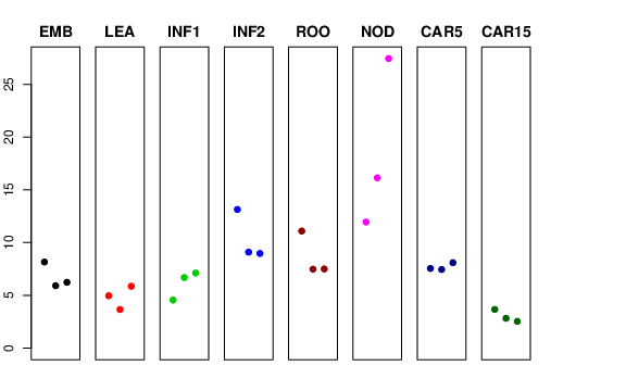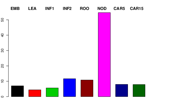 | ROO | Roots from the seedlings (10 cm shoot stage) | 11.0958 | 7.48211 | 7.50028 | 10.8209 |