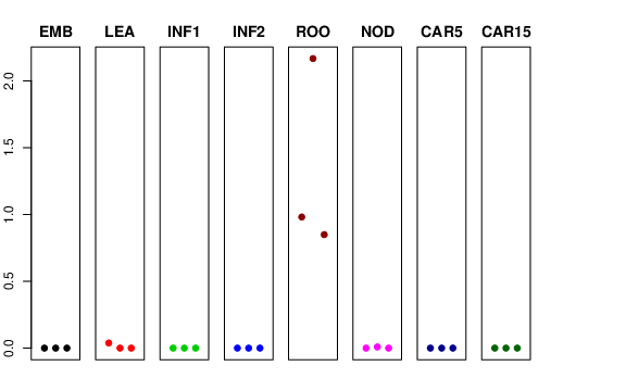 | ROO | Roots from the seedlings (10 cm shoot stage) | 0.981225 | 2.16697 | 0.849184 | 2.44638 |