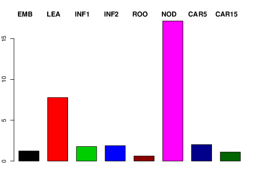 | NOD | Developing tillers at six leaf stage, 3rd internode | 5.15254 | 5.48017 | 7.69677 | 17.1608 |