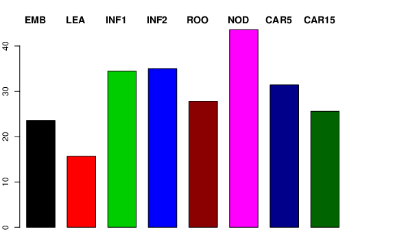 | ROO | Roots from the seedlings (10 cm shoot stage) | 18.1038 | 27.0005 | 18.4485 | 27.8245 |