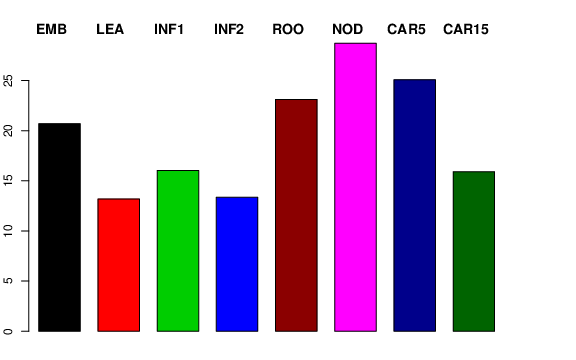 | ROO | Roots from the seedlings (10 cm shoot stage) | 25.2381 | 19.787 | 21.5291 | 23.1231 |