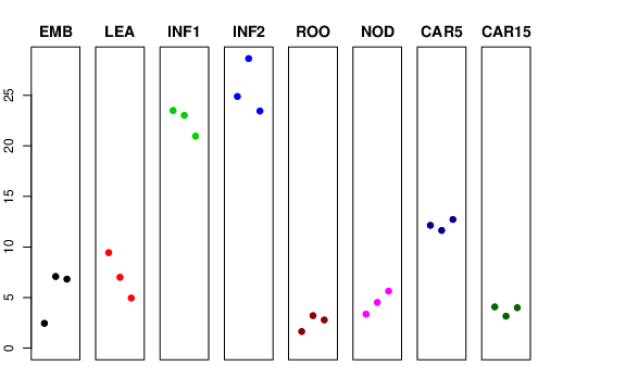 | INF2 | Developing inflorescences (1-1.5 cm) | 24.8815 | 28.631 | 23.4394 | 31.535 |