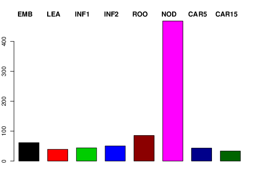 | NOD | Developing tillers at six leaf stage, 3rd internode | 106.93 | 146.493 | 131.635 | 468.538 |