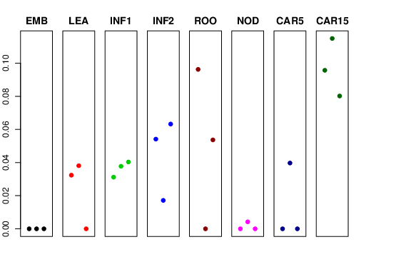 | ROO | Roots from the seedlings (10 cm shoot stage) | 0.0962516 | 0 | 0.0536768 | 0.0402085 |