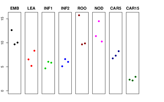 | ROO | Roots from the seedlings (10 cm shoot stage) | 15.739 | 9.67157 | 9.87459 | 11.8967 |