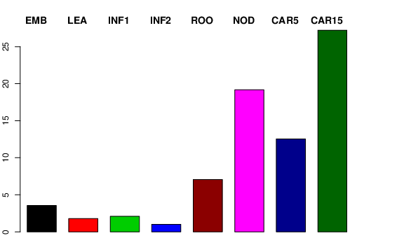 | ROO | Roots from the seedlings (10 cm shoot stage) | 10.6135 | 6.88694 | 6.11159 | 7.06821 |