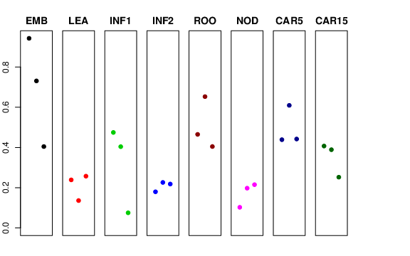 | ROO | Roots from the seedlings (10 cm shoot stage) | 0.465068 | 0.65289 | 0.404682 | 0.708482 |