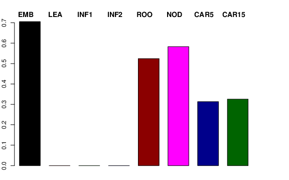 | ROO | Roots from the seedlings (10 cm shoot stage) | 0.589127 | 0.312198 | 1.3884 | 0.524407 |