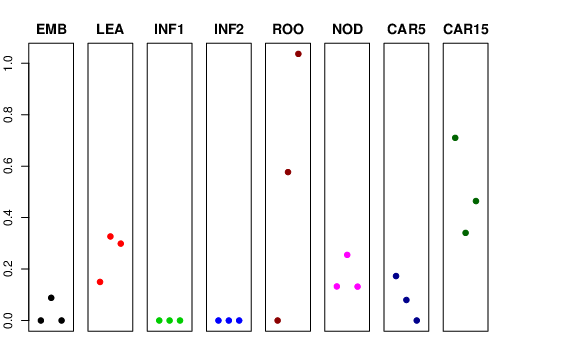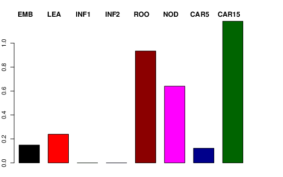 | ROO | Roots from the seedlings (10 cm shoot stage) | 0 | 0.576884 | 1.03628 | 0.933971 |