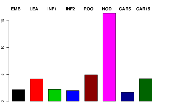 | NOD | Developing tillers at six leaf stage, 3rd internode | 3.42102 | 5.42947 | 4.09859 | 16.404 |