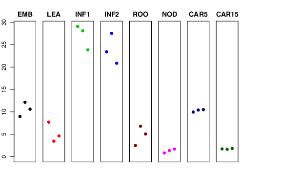 | ROO | Roots from the seedlings (10 cm shoot stage) | 2.49347 | 6.80156 | 5.06634 | 7.48552 |