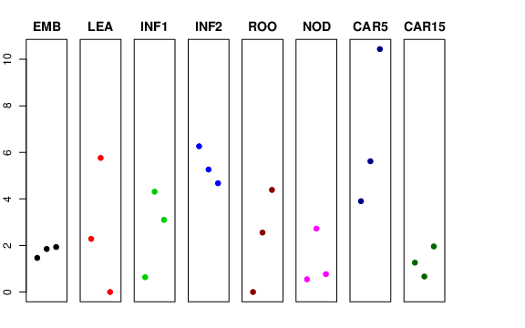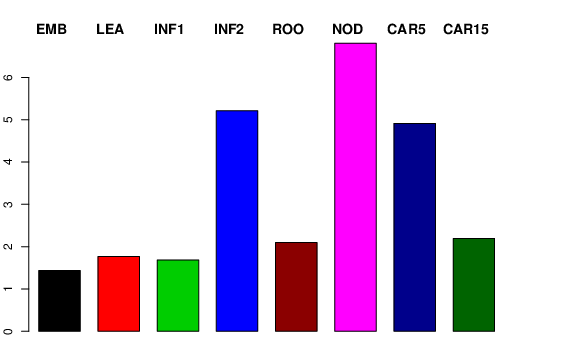 | ROO | Roots from the seedlings (10 cm shoot stage) | 0 | 2.55434 | 4.38775 | 2.09548 |
