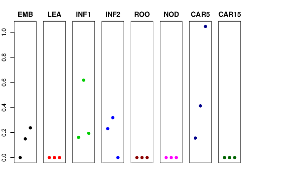 | ROO | Roots from the seedlings (10 cm shoot stage) | 0 | 0 | 0 | 0 |