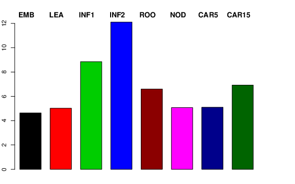 | INF2 | Developing inflorescences (1-1.5 cm) | 10.7165 | 13.0352 | 9.39771 | 12.1074 |