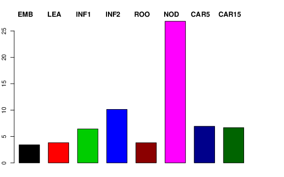 | ROO | Roots from the seedlings (10 cm shoot stage) | 2.87038 | 2.45795 | 2.24537 | 3.80589 |
