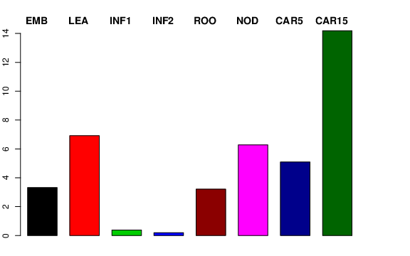 | ROO | Roots from the seedlings (10 cm shoot stage) | 11.5352 | 1.14546 | 2.82543 | 3.21253 |