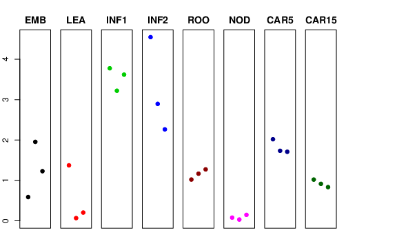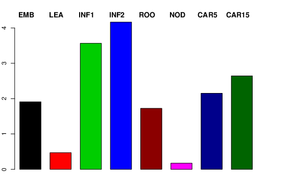 | ROO | Roots from the seedlings (10 cm shoot stage) | 1.02166 | 1.16731 | 1.2735 | 1.723 |