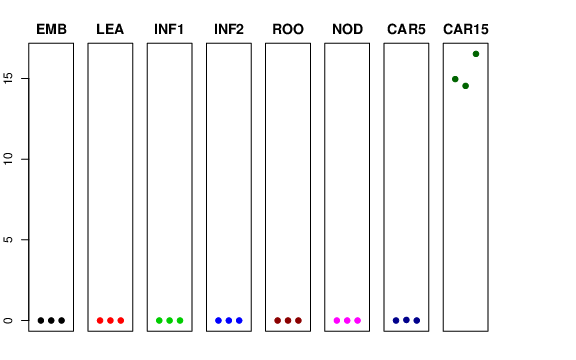| ROO | Roots from the seedlings (10 cm shoot stage) | 0 | 0 | 0 | 0 |