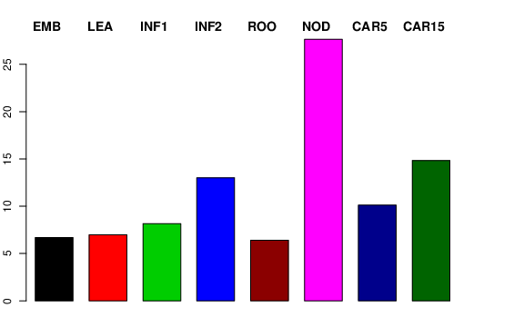 | NOD | Developing tillers at six leaf stage, 3rd internode | 6.61654 | 6.8934 | 8.10005 | 27.6508 |