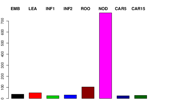 | NOD | Developing tillers at six leaf stage, 3rd internode | 265.223 | 248.344 | 191.4 | 773.603 |
