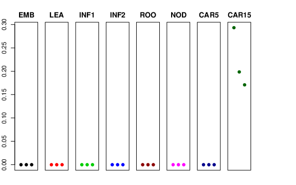 | ROO | Roots from the seedlings (10 cm shoot stage) | 0 | 0 | 0 | 0 |