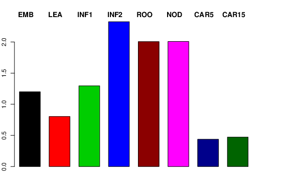 | ROO | Roots from the seedlings (10 cm shoot stage) | 3.31432 | 1.94119 | 2.32105 | 2.00492 |
