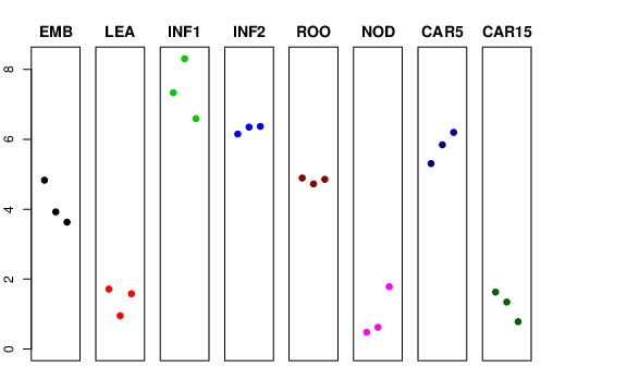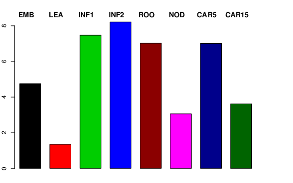 | ROO | Roots from the seedlings (10 cm shoot stage) | 4.89427 | 4.72621 | 4.85696 | 7.02755 |
