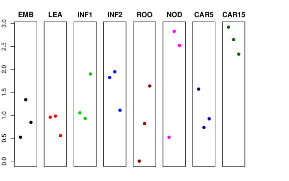 | ROO | Roots from the seedlings (10 cm shoot stage) | 0 | 0.818157 | 1.63816 | 2.24935 |